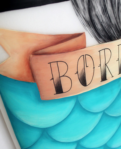 She draws sailors, laughing seagulls and a leitmotived captain with his plentiful beard. Meanwhile, octopuses have their tentacles all tangled into immersed fishing nets. It is like being with the artist on the pitching deck, breathing salty ocean breezes. The captain sits with dignity, proudly wearing a cap, a striped jumper and a worn out pea coat. Like a siren on a solid ground, Daniela depicts traditional representations, reinterpreting them with style, sobriety and talent.