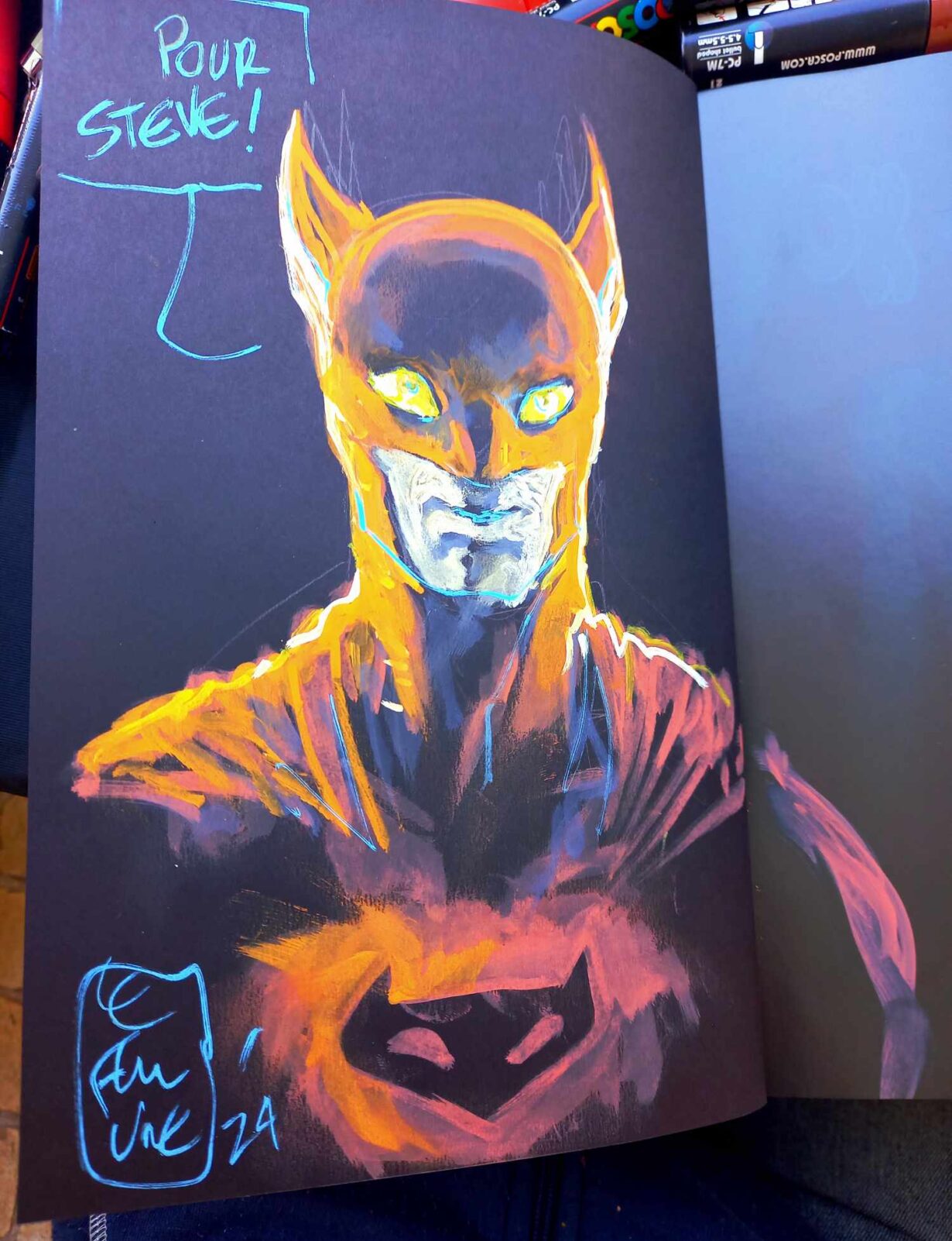 Laurent Lefeuvre ne déroge pas à la règle, et on est tombé sur les dédicaces / dessins qu’il réalise lors d’événements. Panel de POSCA en évidence et c’est parti pour croquer un héros de la pop culture, au choix du lecteur. On peut facilement imaginer que ces jours-là tout le monde se couche très tard !
